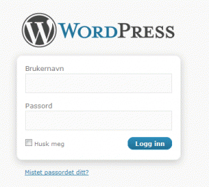 Først, så må du logge inn på ditt administrasjonspanel. For å komme dit, taste du inn ditt domenenavn i adressefeltet, etterfulgt av /wp-admin/. Vi kommer i denne manualen til å bruke domenet solidmedia.no som test.